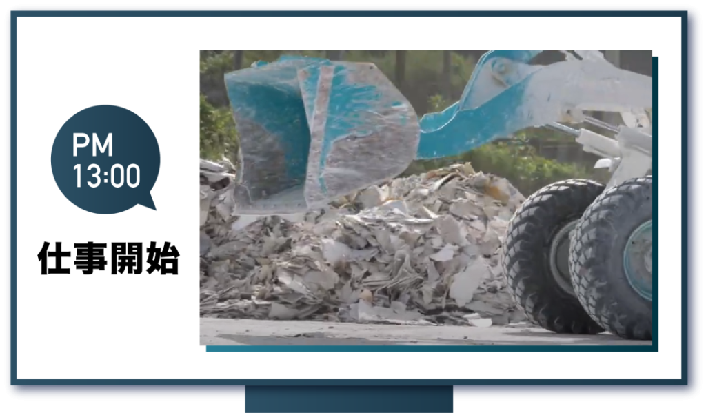 仕事内容は、「僕の担当が廃石膏ボードのリサイクル」になってまして、その様子については下記動画で詳しく紹介してますので見てみてください。